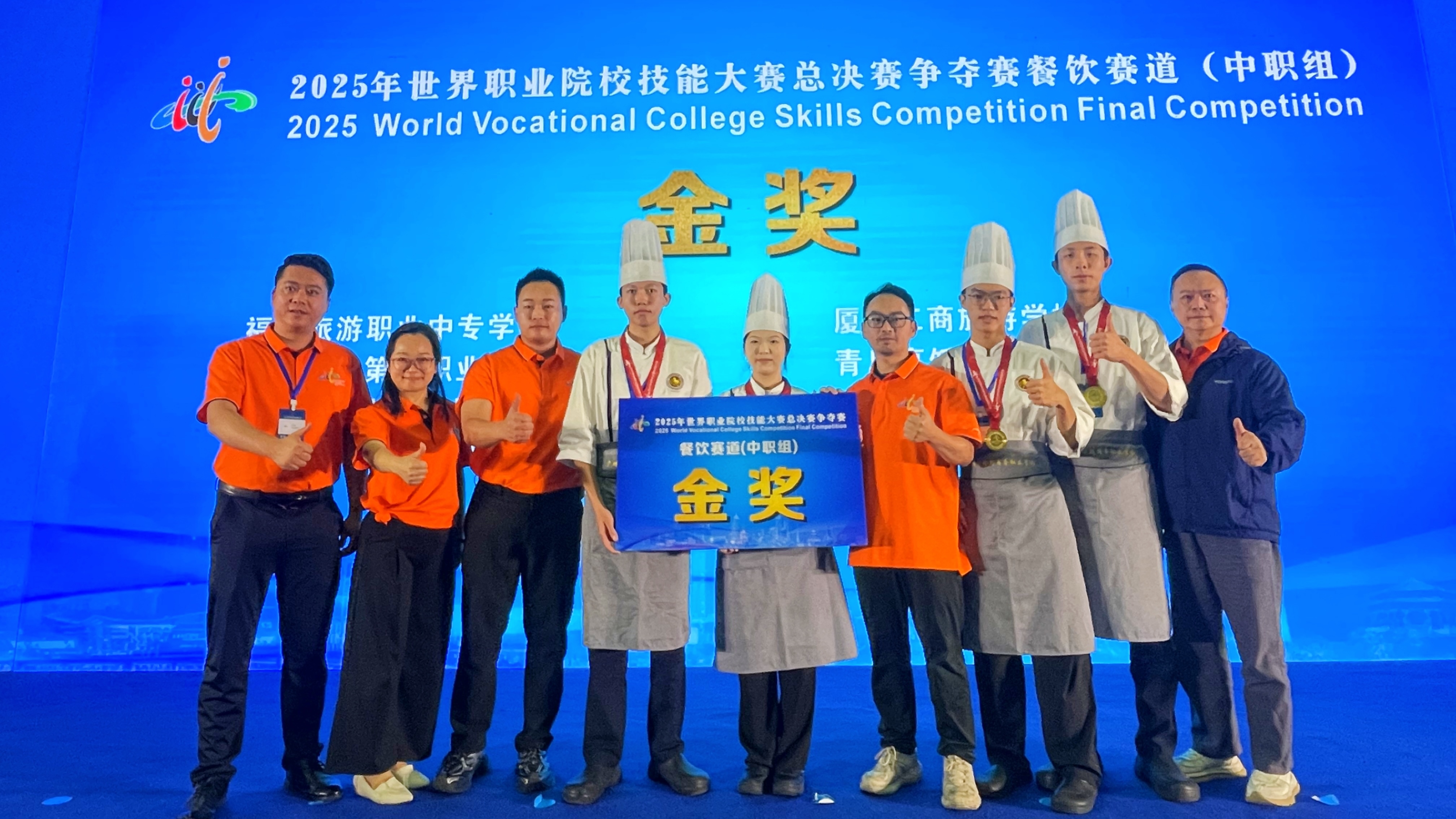 希望厨师李树宸(左四)与团队摘得2025年世界职业院校技能大赛金奖